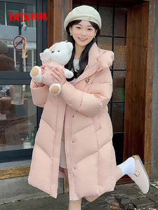 鸭鸭品牌羽绒服女中长款2025年冬季新款时尚减龄连帽韩版保暖外套