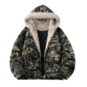 跨境派克工装棉服男女同款秋冬季毛领棉袄加厚情侣款连帽棉衣外套