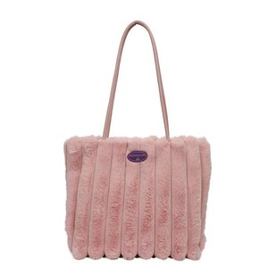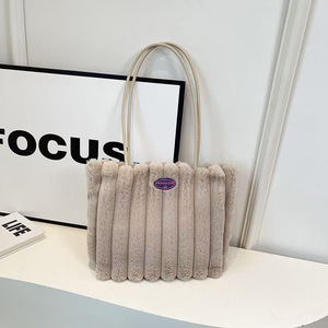 跨境女包韩版秋冬毛绒绒竖条手提包时尚洋气托特包潮大容量单肩包