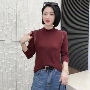 一件代发直播爆款2025秋季新款时尚纯色半高领洋气减龄长袖打底衫
