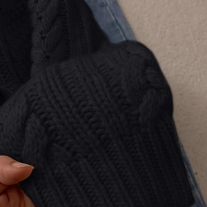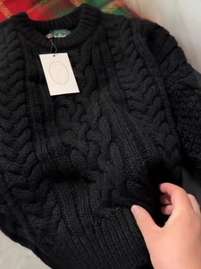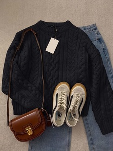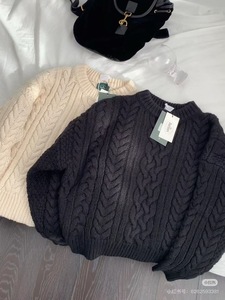 级推荐!巨显白~黑色手工编织麻花毛衣女厚实韩范针织上衣