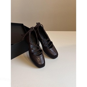 2025新款绑带休闲玛丽珍鞋女超火爆款圆头粗跟芭蕾舞鞋