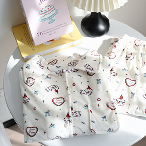 【海岛绒小狗派对】秋冬新款双面海岛绒睡衣女加厚保暖可爱家居服