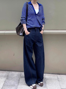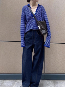 韩系氛围感条纹polo领长袖针织衫女早秋季设计感小众短款穿搭上衣