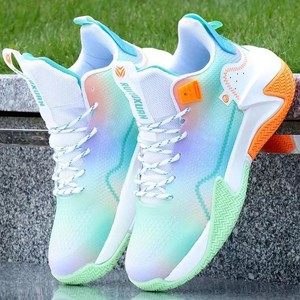 跨境篮球鞋春秋款韩版拼色高帮飞织网布青少年运动鞋厚底回弹男鞋