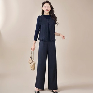 T909 秋季新款洋气时髦马甲T恤打底衫阔腿裤三件套
