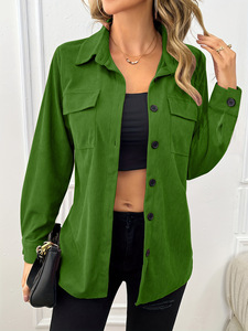 亚马逊跨境2025秋冬灯芯绒翻领衬衣复古开衫欧美口袋衬衫外套女