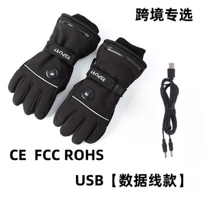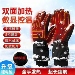 跨境加热手套户外骑行运动加厚电热手套触屏充电保暖防寒发热手套