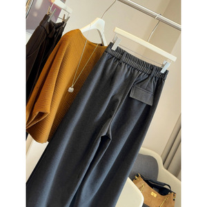 2025秋冬新款松紧加厚毛呢香蕉阔腿休闲长裤女高腰显瘦保暖弯刀裤