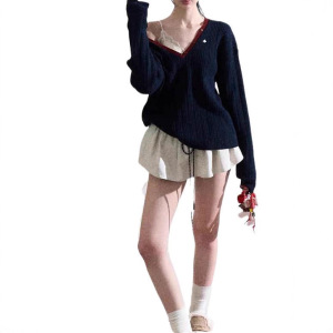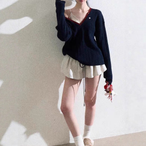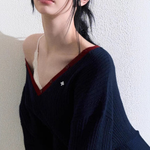OAKMOO/ "河流渡过我" 日常气质通勤V领时尚坑条羊毛绞花针织上衣