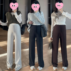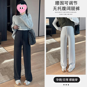 孕妇裤2025秋冬新款休闲保暖显瘦垂感百搭慵懒拼色无托腹阔腿裤子