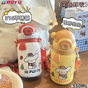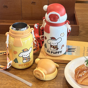 新款316不锈钢保温杯高颜值可爱女生随手杯户外便携提绳吸管杯