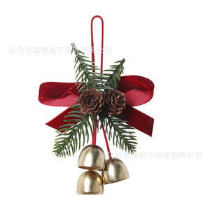 圣诞节铃铛挂件红色丝绒蝴蝶结圣诞树松果场景布置用品车挂门装饰