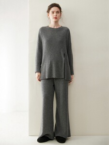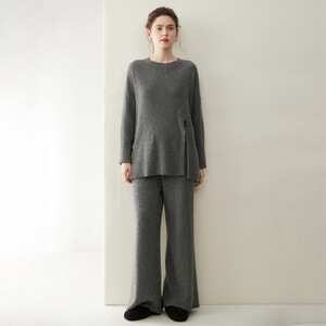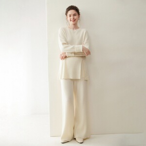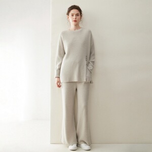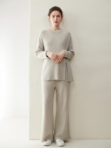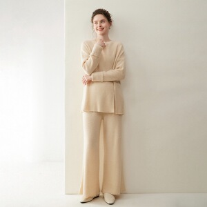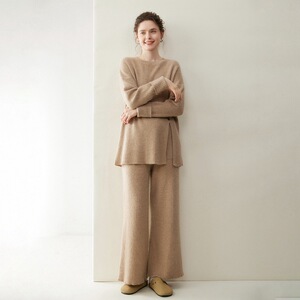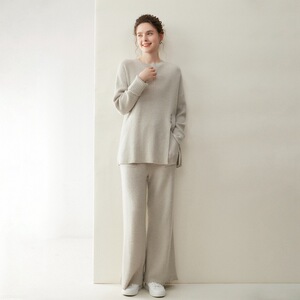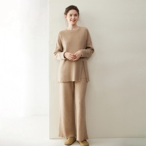 轻奢休闲山羊绒套装女圆领套头长袖毛衣阔腿裤2025秋冬新款两件套