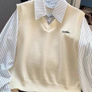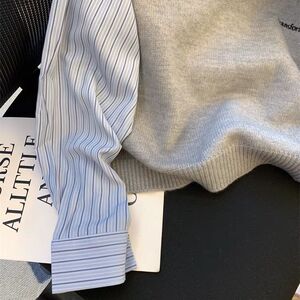 灰色针织毛衣背心拼接假两件条纹衬衫女韩系穿搭Polo开衫上衣春季
