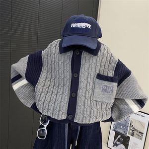 儿童韩版学院风POLO领拼色针织衫2025秋季新品童装中小童宝宝毛衣