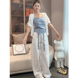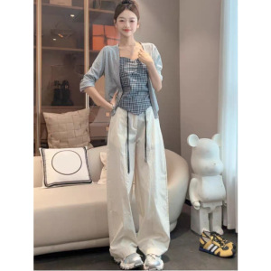 2025新款大码韩系度假风休闲裤女早秋新款宽松垂感休闲百搭阔腿裤