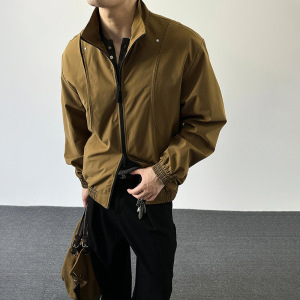 秋季新款2025分割拼接设计感立领夹克男高级感休闲运动宽松外套潮