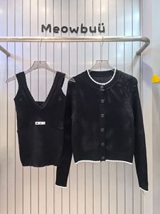 25秋季新款南油miu时尚简约修身显瘦百搭针织镂空背心+开衫外套女
