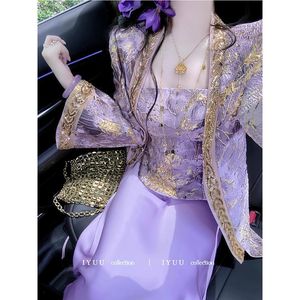 时尚中式国风新款立体浮雕绣花外套刺绣吊带半身裙三件套套装