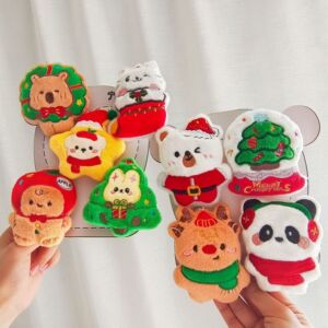 卡通圣诞造型毛绒雪人麋鹿星星玩偶胸针学生节日礼物DIY包包挂饰