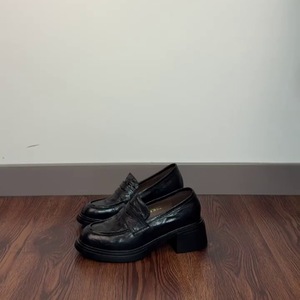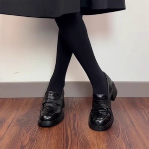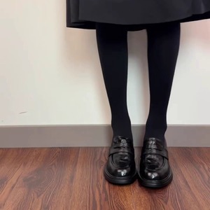 羊皮版~2025新款复古风圆头粗跟乐福鞋女款百搭一脚蹬懒人小皮鞋