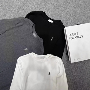 Y25秋冬新款时尚百搭休闲圆领简约刺绣百搭打底长袖T恤