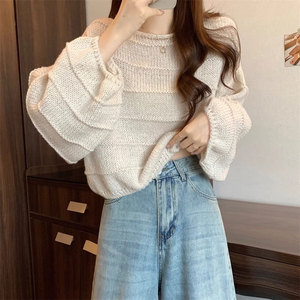 绿色套头短款毛衣女秋季2025新款内搭针织衫宽松小个子上衣外套