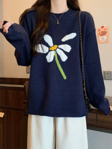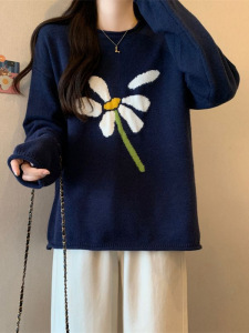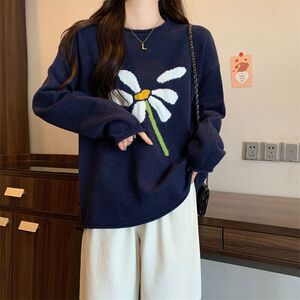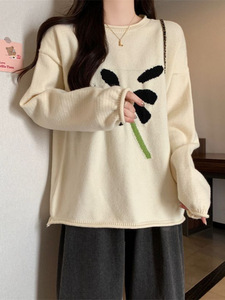 早秋慵懒风韩系复古提花卷边针织2025学院风新款宽松上衣女外穿潮