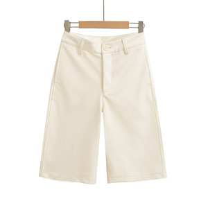 8647-25秋季新款 美式简约基础款PU皮显瘦单扣直筒休闲五分裤短裤