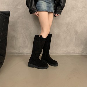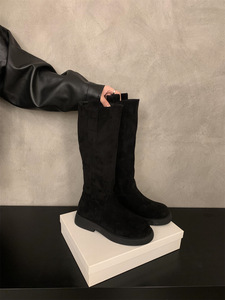 卡其色长靴女绒面复古高筒靴2025春秋冬季不过膝厚底马丁靴堆堆靴