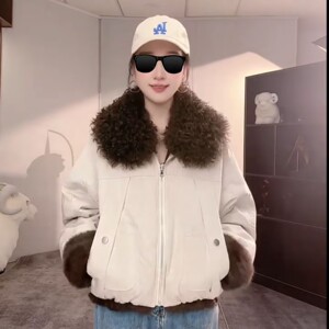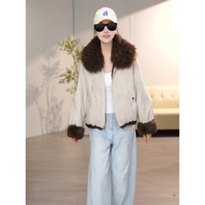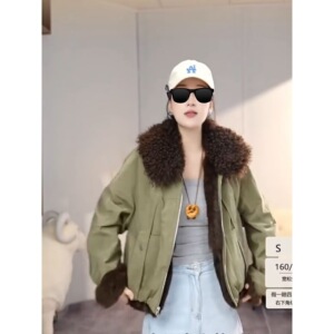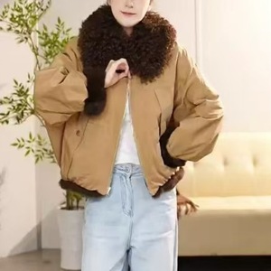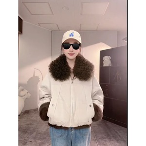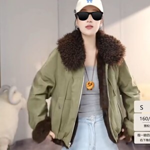 2025秋冬新款双面穿仿兔皮毛一体派克服宽松显瘦短款毛领夹克上衣