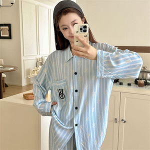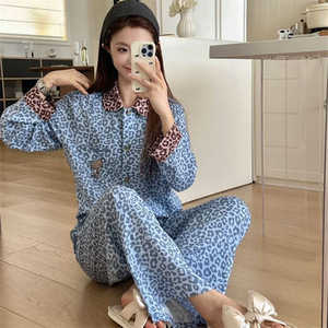 2025年春秋季豹纹小翻领开衫莱赛尔天丝棉日系宽松家居服套装女士