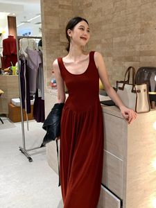 【现货】出席重要场合的裙子清冷穿搭长款宴会法式红色吊带连衣裙