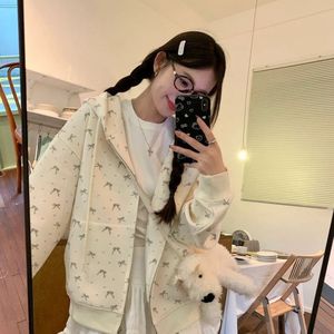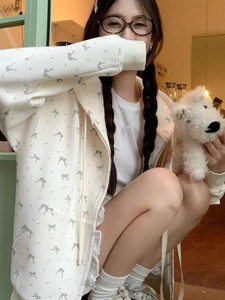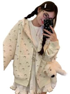 碎花美式复古印花秋休闲开衫连帽卫衣女甜美宽松慵懒外套上衣潮流