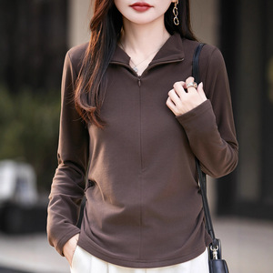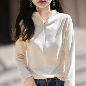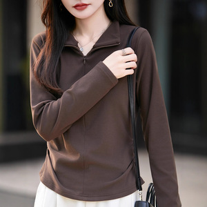 轻柔舒适立领德绒宽松卫衣女时髦半拉链保暖长袖秋冬加厚T恤上衣