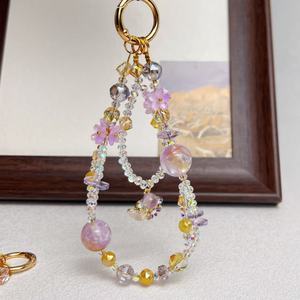 高级感紫金蝴蝶吊坠水晶手机链原创手工串珠钥匙扣挂饰包挂挂饰
