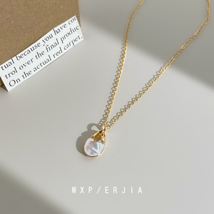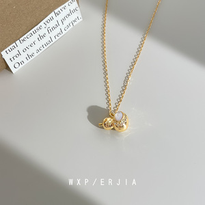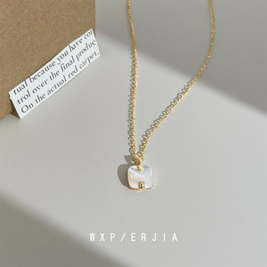 法式复古几何方形贝壳项链厚镀18K时尚个性小众高级感葫芦锁骨链