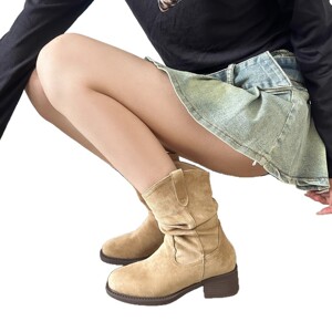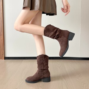 羊皮版~内增高8cm美拉德马丁短靴女复古显瘦脚粗跟套筒西部牛仔靴