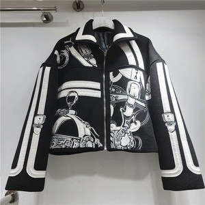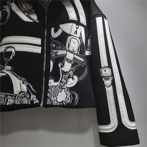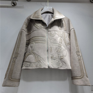 欧洲站2025秋冬新款重工刺绣拼接毛呢女短上衣冬装外套