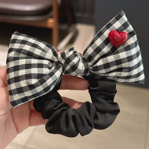 黑色格子蝴蝶结大肠发圈女高级感发绳红色爱心头绳耐用头饰发饰品