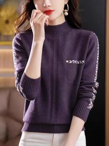 羊绒毛衣女25秋冬新款半高领打底衫女加厚针织衫拼色内搭宽松上衣