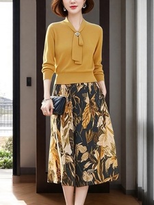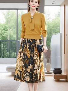 巨好看的套装裙秋冬新款系带毛织针织碎花裙两件套装女2025春秋