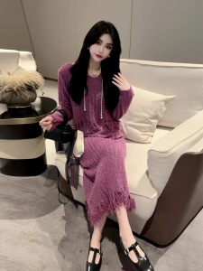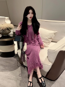 早秋穿搭一整套流苏针织套装裙女秋2025新款减龄毛衣半身裙两件套