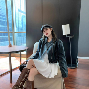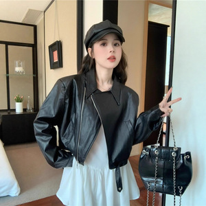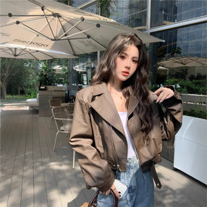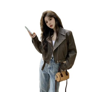 棕色pu皮衣外套女秋冬季2025新款宽松港风小个子短款夹克机车上衣