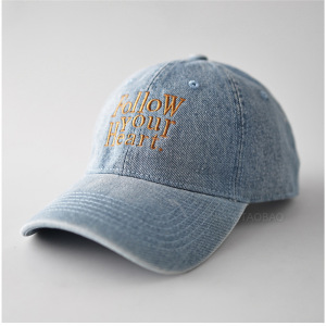 撞色字母Follow软顶棒球帽深牛仔