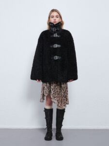 夏稚 立领皮带扣保暖羊羔毛绒皮毛一体外套女秋冬款加厚毛毛上衣