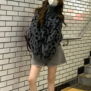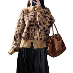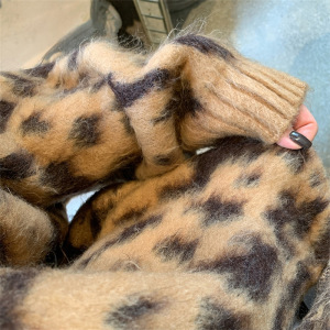 复古豹纹毛衣外套女秋冬新款保暖高级感宽松慵懒风小个子针织开衫