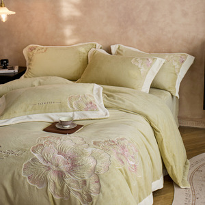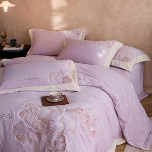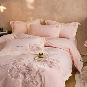 高端A类270克全消光牛奶绒四件套刺绣花卉冬季加厚保暖被套抗静电