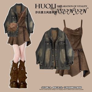 秋季美拉德套装女2025新款港风牛仔外套配设计感吊带连衣裙两件套
